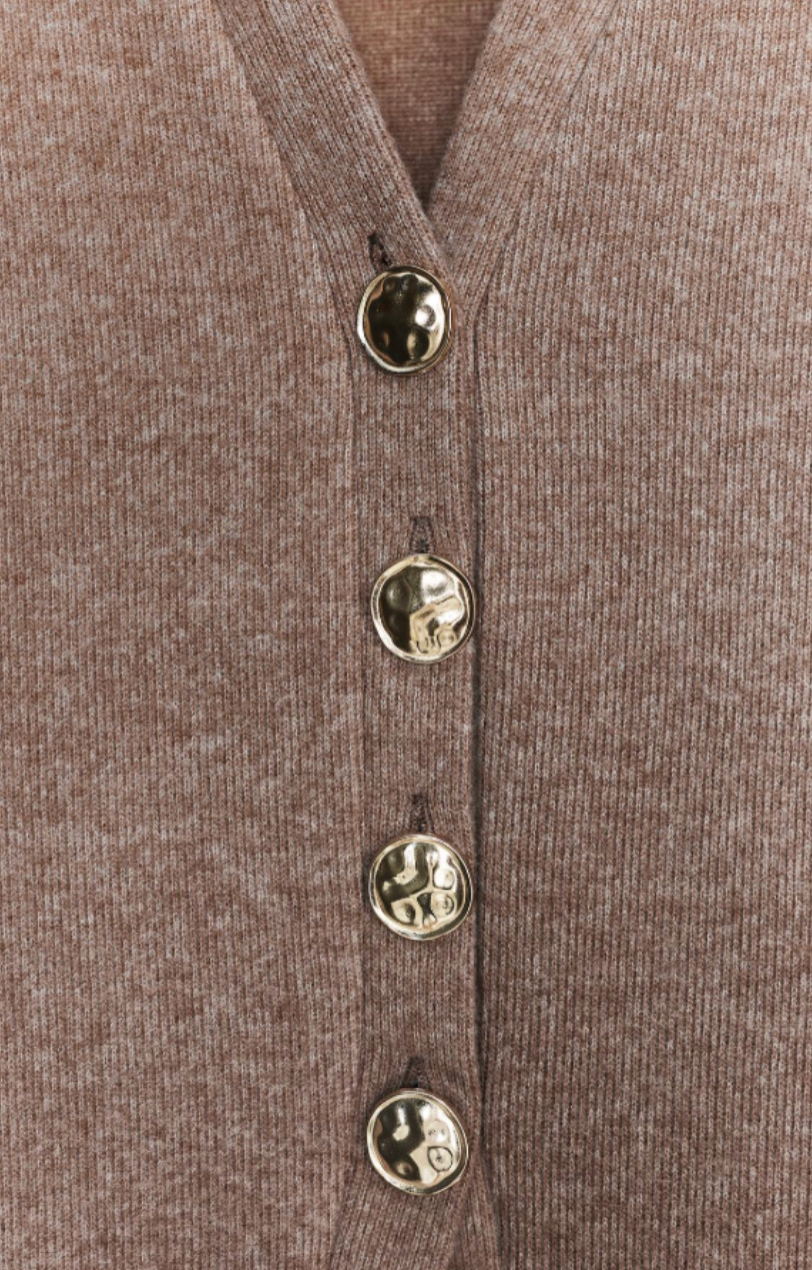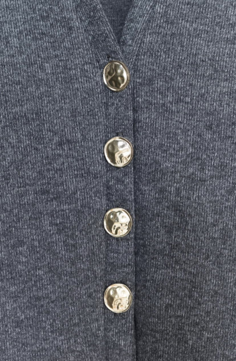 • Elegant Buttoned Top: The fitted cardigan with chic button details provides a polished look with a flattering silhouette.
