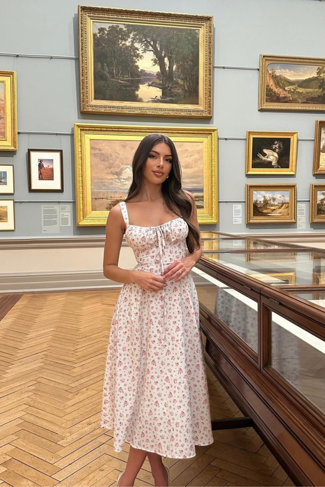 The Stella Corset Dress is adorned with a charming floral print and carries an effortless vintage vibe. Expertly tailored from a breathable poplin fabric blend, this piece is all about structure and softness in perfect harmony.